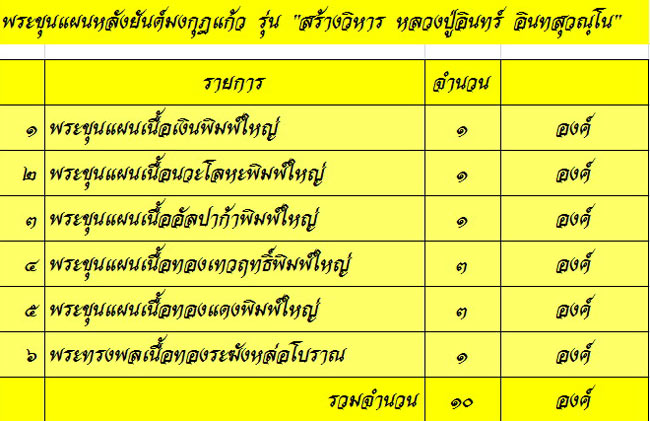 หนึ่งชุด หกรายการ รวมสิบองค์