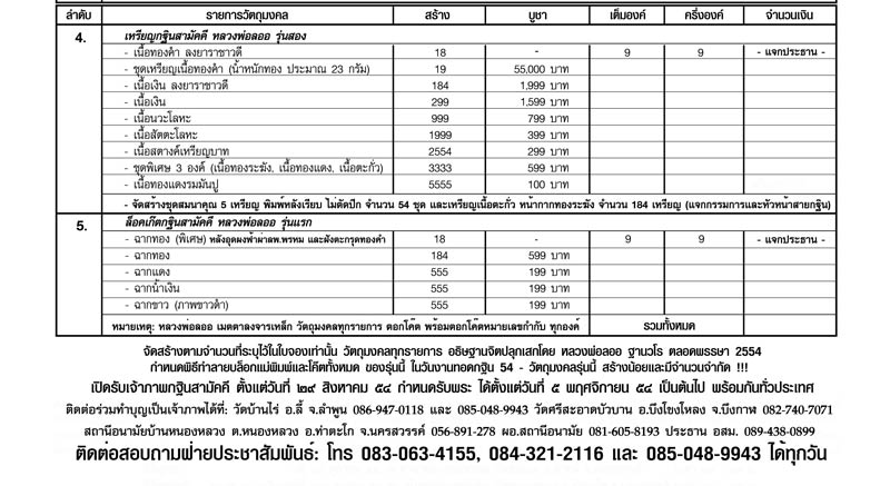 4.5 เนื้อสตางค์เหรียญบาท สร้าง 2554 องค์ / องค์ละ 299 บาท / เต็มองค์ ==> มียอด 15 องค์ และ ครึ่งองค์ ==> มียอด 15 องค์