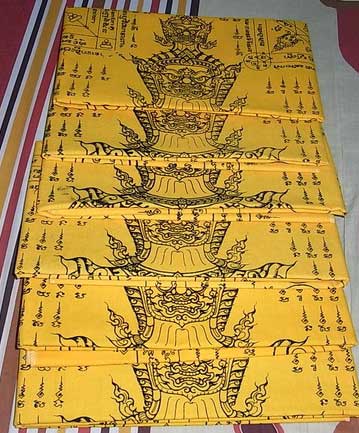 ผ้ายันต์ท้าวเวสสุวรรณมหาราช หลวงพ่อสาครปลุกเสก 1 ไตรมาส ผืนใหญ่ ขนาด0.80 ม. x 1.20 ม (สีเหลือง) จำนวนสร้างแค่ 1000 ผืน มีหมายเลขและปั้มตราวัดหนองกรับทุกผืน