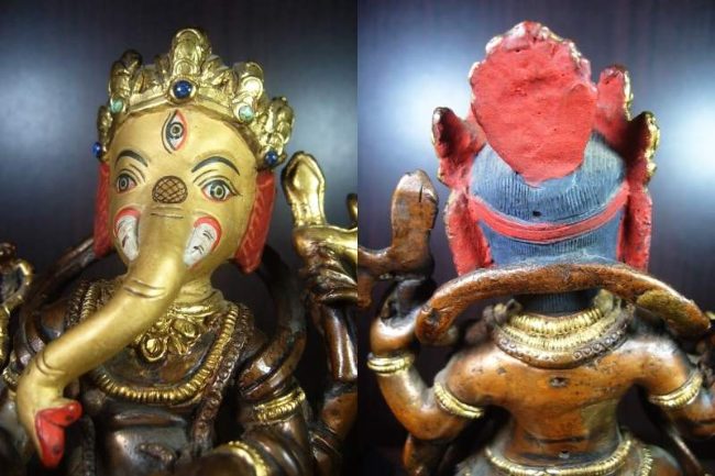 ...................เทวรูปบูชา พระพิฆเนศ เปียกทอง ศิลปะชั้นสูงของเนปาล สวยงาม อลังการจริงๆ องค์นี้ที่ท่านชมอยู่นี้เป็นของเก่าสั่งนำเข้าโดยตรงจากประเทศเนปาล ศิลปะงดงามตระการตา อ่อนช้อยมองประดุจมีชีวิตจริงทีเดียว ศิลปะการเปียกทองก็ทำได้งดงามเป็นอย่างยิ่ง ใบหน้ามีเป็นการแต่งแต้มสีด้วยมือล้วนๆ อายุกาลจากความเก่าผ่านมาไม่น่าต่ำกว่าร้อยปีแต่ความสวยงามยังมีให้เห็นได้อย่างชัดเจน บ่งบอกได้ถึงความชำนาญ ความสามารถของช่างเนปาล และที่สำคัญคือสามารถบ่งบอกถึงความสัทธาที่มีอยู่ในตัวเทพองค์นั้นๆได้เป็นอย่างดี จัดได้ว่าเป็นงานศิลป์ชั้นสูงเลยทีเดียว