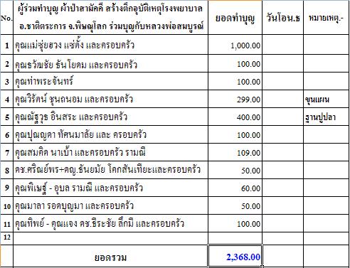| หัวข้อกระทู้ : ขอเชิญชวนร่วมทำบุญผ้าป่าสามัคคีขอเชิญชวนร่วมทำบุญ ผ้าป่าสามัคคี สร้างตึกอุบัติเหตุโรงพยาบาล ชาติตระก |