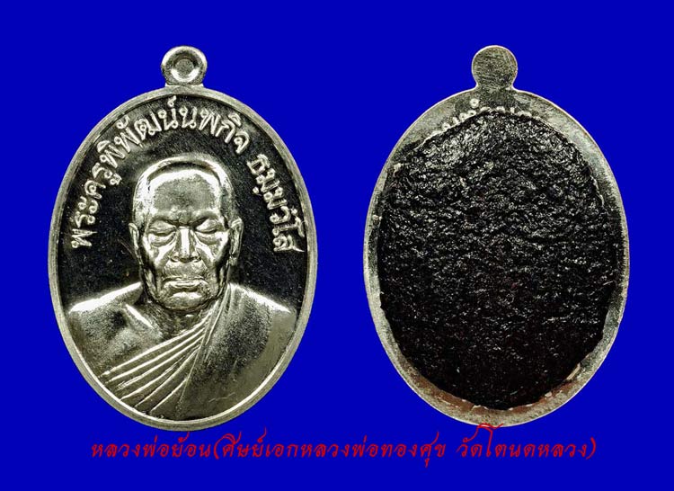- เหรียญรูปเหมือน เนื้อนวะโลหะ หลังพอกครั่ง ฝังหมุดเงิน 1 องค์