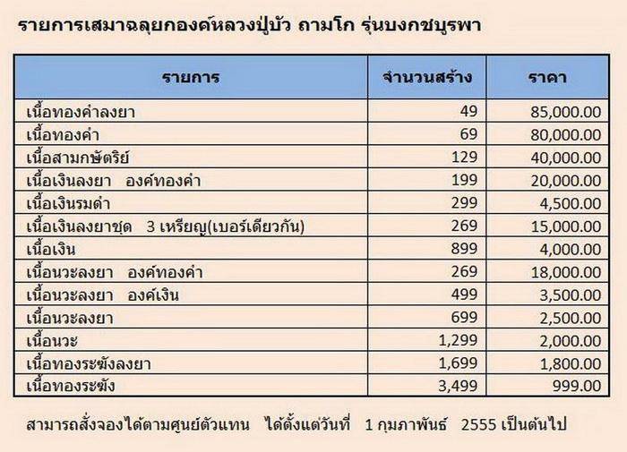 **** พระเกจิดีครับ วัตถุมงคลของท่านล้วนมากด้วยประสบการณ์ ลูกศิษย์ของท่านตามเก็บวัตถุมงคลของท่านอย่างต่อเนื่อง ราคาของวัตถุมงคลขยับขึ้นตามความต้องการ ของลูกศิษย์ลูกหาและผู้ที่ตามเก็บวัตถุมงคลของท่าน เหรียญ บงกชบูรพา เป็นเหรียญที่สวยงาม วัตถุประสงค์ดี มวลสารดี พิธีดี จำนวนไม่มากไม่น้อยเหมาะกับการสะสม สร้างเพียง ๑๐,๓๖๙ เหรียญ แต่ราคาตอนนี้ยังเบา ๆ ครับ ถ้าเทียบกับวัตถุมงคลของท่านอื่น ๆ ที่ก้าวไปหลายเท่าตัวแล้วครับ ****
