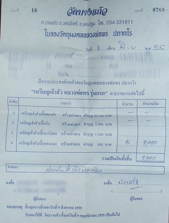 เจ้าสัวรุ่นแรกหลวงพ่อพร กระแสแรงสุดกระหึ่ม รวมยอดเงิืนจองทุกเนื้อมากถึง20กว่าล้านบาท นั้นหมายถึงกระแสที่กระหึ่มเพียงใด แผงหน้าัวัดขายใบจองเนื้อทองแดงกันองค์ละ800-1000แล้ว