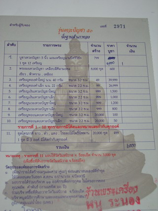 ใบจอง เทวะบัญชา ชุด เล็ก = 4500