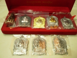 หลวงปู่หุน วัดบางผึ้ง หลวงปู่หุน อายุ 93 ปี ท่านบวชตั้งแต่เป็นเณร จนเมื่อครบบวชพระท่านก็บวชพระและออกร่ำเรียนวิชากับพระอาจารย์ต่างๆ ในสมัยนั้นมากมาย โดยเฉพาะหลวงพ่อจาด วัดบางกระเบา เมื่อครั้งเกิดสงครามยุคมหาเอเชีย พ.ศ.2483 จอมพล ป.พิบูลสงครามได้ขอให้หลวงพ่อจาด วัดบางกระเบาช่วยทำตะกรุดแจกทหาร จนมีประสบการณ์มีชื่อเสียงในยุคนั้นมากมาย ครั้งหนึ่งมีเครื่องบินฝรั่งเศสมาทิ้งระเบิดใส่ทหารแต่ไม่มีผู้ใดได้รับบาด เจ็บเลย หลวงปู่หุนนี้แหละเป็นคนม้วนตะกรุดและพันตะกรุดให้หลวงพ่อจาดในตอนนั้นเอง และคอยรับใช้ในเรื่องต่างๆ จนหลวงพ่อจาดให้ความเมตตาในความขยันขันแข็ง ความอ่อนน้อมถ่อมตนของหลวงปู่หุน ท่านเมตตามากรักเหมือนลูก สอนวิชาต่างๆ ให้หมดสิ้น ทั้งสอนเสกพระ วิชาเมตตามหานิยม วิชาคงกระพัน โดยเฉพาะวิชาบังไพรหลวงพ่อจาดท่านเก่งมาก มีหลายครั้งที่หลวงพ่อจาดเรียกหลวงปู่หุนให้มานั่งเสกเหรียญและตะกรุดด้วย กัน เพราะอยากทดสอบลูกศิษย์ จนหลวงพ่อจาดเอ่ยชมว่า "เอ็งนี่แน่เสกได้เหมือนข้าไม่มีผิด ได้ดังใจข้าจริงๆ" จากนั้นหลวงปู่หุนก็ได้ลาหลวงพ่อจาดออกร่ำเรียนต่อไปอีกจนมาพบหลวงพ่อทอง วัดก้อนแก้ว ชาวบ้านแถวนั้นรู้จักดีเพราะหลวงพ่อทองเก่งมากในเรื่องวิปัสสนากรรมฐาน ช่วยชาวบ้านในเรื่องต่างๆ ทั้งเรื่องเงินๆ ทองๆ เดือดร้อนล้มละลาย เจ็บไข้ได้ป่วย หลวงพ่อทองช่วยได้ หลวงปู่หุนเลยฝากตัวเป็นลูกศิษย์ร่ำเรียนวิชาจนหมดสิ้นนานถึง 7 ปี แล้วหลวงพ่อทองให้ไปหาหลวงปู่คำปัน พระเขมรเพื่อสอนวิชาต่อ หลวงปู่หุนท่านก็ออกธุดงค์ไปจนได้พบ หลวงปู่คำปันได้ทดสอบวิชามากมาย มีคืนหนึ่งหลวงปู่คำปันเสกท่อนฟืนเผาผีเป็นตะขาบนับร้อยตัวยั้วเยี้ยไปหมด หลวงปู่หุนร่ายพระเวทย์ท่องมนต์แล้วลูบตะขาบให้กลับไปเป็นท่อนฟืนดังเดิม ถัดจากตะขาบก็เสกก้อนถ่านกลายเป็นผึ้งนับพันตัว หลวงปู่หุนท่านหยิบดิน 1 กำมือหลับตาท่องคาถา 1 อึดใจ ลืมตาโปรยดินใส่ผึ้ง จากผึ้งก็กลายเป็นถ่านดังเดิม เมื่อทดสอบวิชาผ่านหลวงปู่คำปันจึงสอนวิชาให้หมดสิ้น แล้วท่านก็ลาหลวงปู่คำปันเพื่อศึกษาต่อไป ปัจจุบันท่านเป็นเจ้าอาวาสวัดบางผึ้ง ได้ใช้วิชาที่ท่านเรียนมาช่วยเหลือลูกศิษย์ต่างๆ มากมาย ช่วยได้ทุกเรื่อง เศรษฐีแถวนั้นนับถือท่านมาก เพราะหลวงปู่หุนช่วยไว้เยอะจากล้มละลายกลายเป็นเศรษฐี จากคนจนกลายเป็นคนรวย หลวงปู่นี่แหละเสกแผ่นทองเข้าตัว นับว่าเป็นพระสุปฏิปันโนแห่งลุ่มน้ำบางปะกง ชุดกรรมการมีทั้งหมด 8 ครับ พระกริ่งศุภมงคลรุ่นแรก เนื้อนวะโลหะก้นเงินเกศเงิน 1 