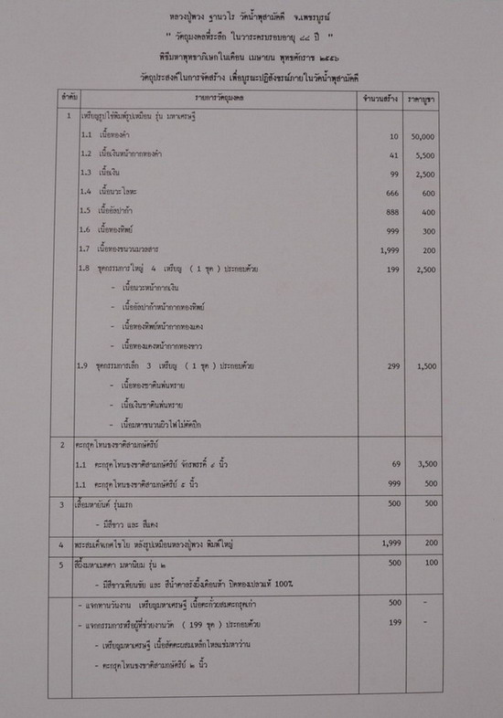 6.เนื้อทองชนวนมวลสาร มี 20 องค์ ราคาองค์ละ 400