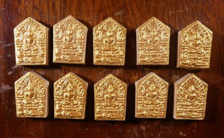 พระขุนแผนยอดฉัตร เนื้อผงพราย ทาทอง ไม่มีตะกรุด พิมพ์ใหญ่ 10 องค์ องค์ละ 450.- ยกชุด องค์ละ 400.-