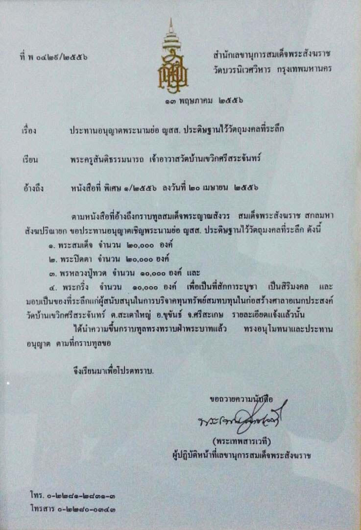พระสมเด็จ จำนวนจัดสร้าง 6 พิมพ์ รวมทั้งหมด 20,000 องค์ ได้แก่