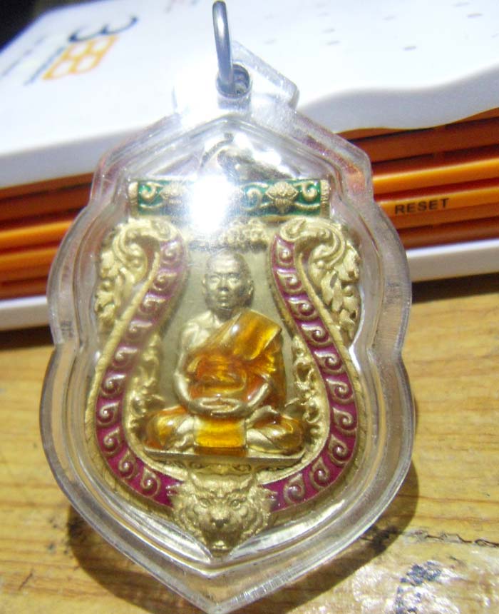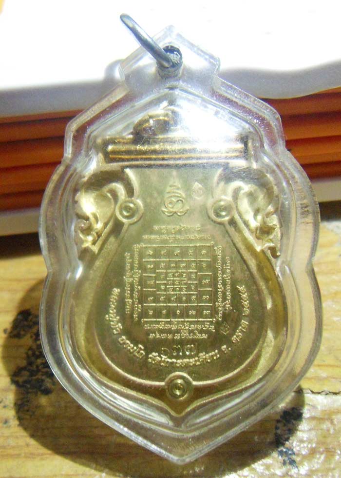 เหรียญเสมาฉลุ หลวงปู่บัว รุ่น บงกชบูรพา เนื้อทองระฆังลงยา 3 สี หมายเลข ๖๓๗ พร้อมเลี่ยมกันน้ำ + กล่องเดิม