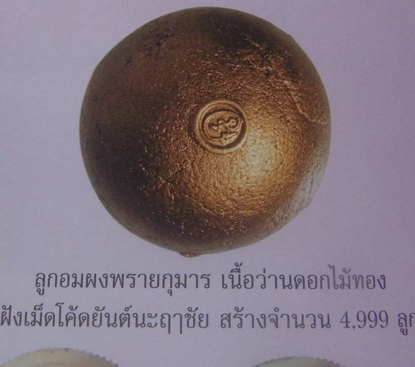ลูกอมเนื้อผงพรายกุมาร ไตรมาส51 ลพ.สาคร ฝังโค้ด เนื้อเหลืองว่านดอกไม้ทอง (เนื้อเดียวกับขุนแผนในชุดกรรมการ) เม็ดใหญ่ทาทองสวยๆ