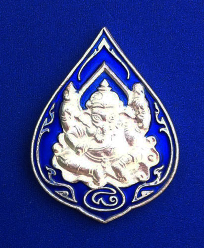 เหรียญพระพิฆเนศวร หลวงพ่อชื้น วัดญาณเสน รุ่นสำเร็จทุกประการ เนื้อเงินลงยา ปี 2545 สภาพสวยมาก ด้านหลังมีจาร