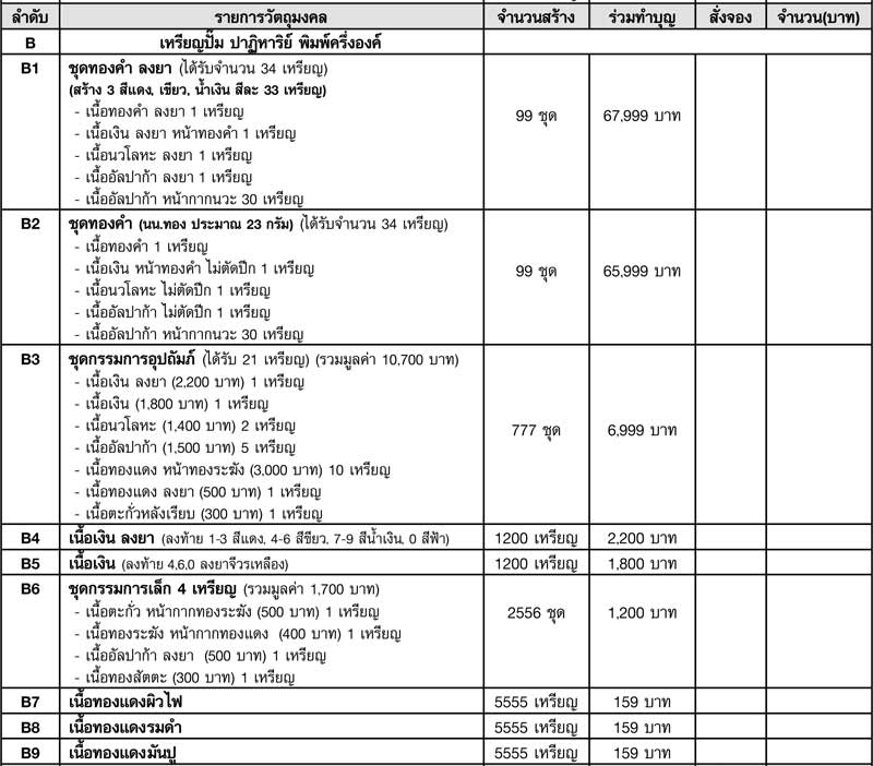 เหรียญปั๊ม ปาฎิหารย์ ครึ่งองค์ ชุดทองคำลงยา B1 หมายเลข 17 ยกชุดครับ