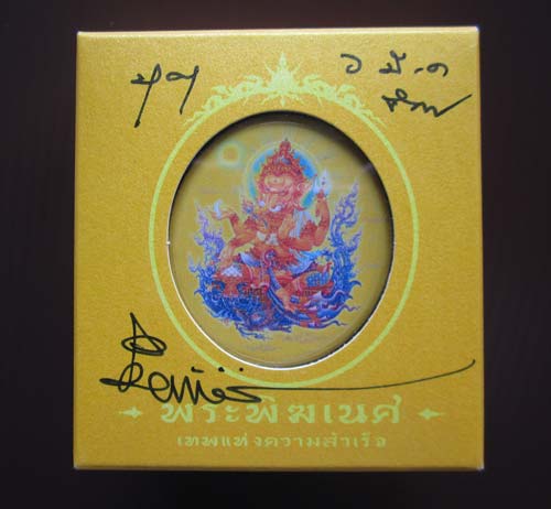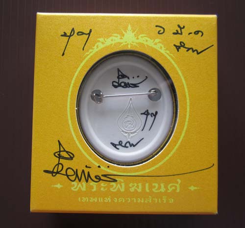 เข็มกลัด องค์พ่อปู่พระพิฆเนศ รุ่นบุญ สีเหลืองทอง บุญขวา ๕๗ ล่าง ๑ใน๕๖๗ องค์ ลายเซนต์หน้ากล่องยาวมาก โค๊ดเต็ม ลายเซนต์สวย