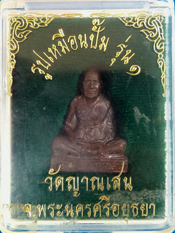 รูปเหมือนปั๊มรุ่นแรก หลวงปู่ชื้น วัดญาณเสน อยุธยา ปี 2545 เนื้อลูกแก้วพร้อมกล่องเดิม สภาพสวย