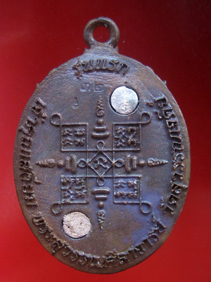 ครั้งแรก! หลวงปู่นั่งสมาธิเต็มองค์ เสมือนนั่งบนดอกบัว รอบๆเหรียญท่านให้ยกซุ้มลอดลายไทยเอาลายจากหน้าต่างพระอุโบสถวัดสุวรรณเจดีย์มาใส่เพื่อให้เป็นศีลปะฉบับวัดโบราณเมืองเก่าแก่สมัยรัชการที่ 3 มีใข่อรหันต์วิ่งรอบขอบเหรียญ ให้ทำซุ้มยกมีลายกนกดูเป็นเอกลักษณ์ ด้านบนเหรียญหลวงปู่ให้ทำ ห่วงเชื่อม เพื่อคงความโบราณฉบับพระผู้เฒ่าทุ่งมหาราช