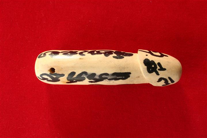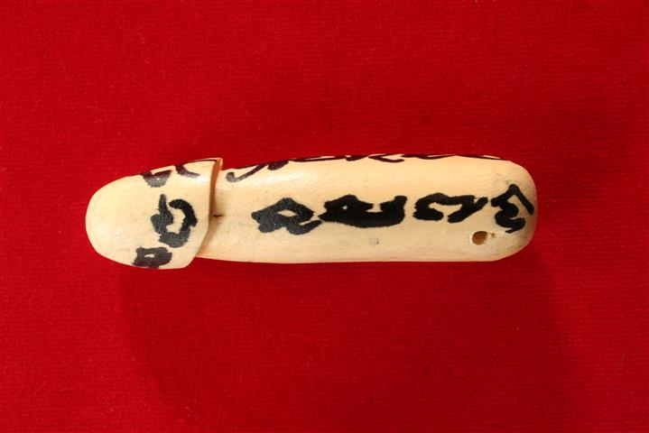 ปลัดขิกไม้รักแกะ จารหมึก ขนาดประมาณกว้าง 3/4 นิ้ว ยาว 3 นิ้ว