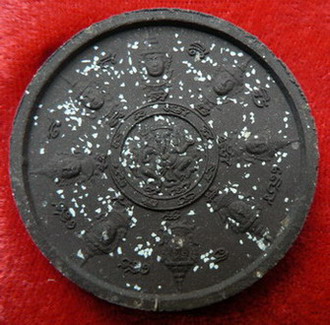 พระผงทิพย์มงคล 9 เทวา ศรีวิชัยนามปี เนื้อเปลือกมังคุด ปี 30 หน้าและหลังโรยผงสมเด็จ ปี 45 จำนวนสร้าง ถึง 200 องค์ แจกกรรมการเท่านั้น โดย ดร.ไมตรี และท่าน ขุนพันธ์ หลังเป็นพระ พิคเณศวรพระ มีน้อย เป็นพระแห่งโชคดวงชะตาและความสำเร็จ เสริมบารมี 9 เทวารักษาวัน ขนาด ๓.๖ ซ.ม.