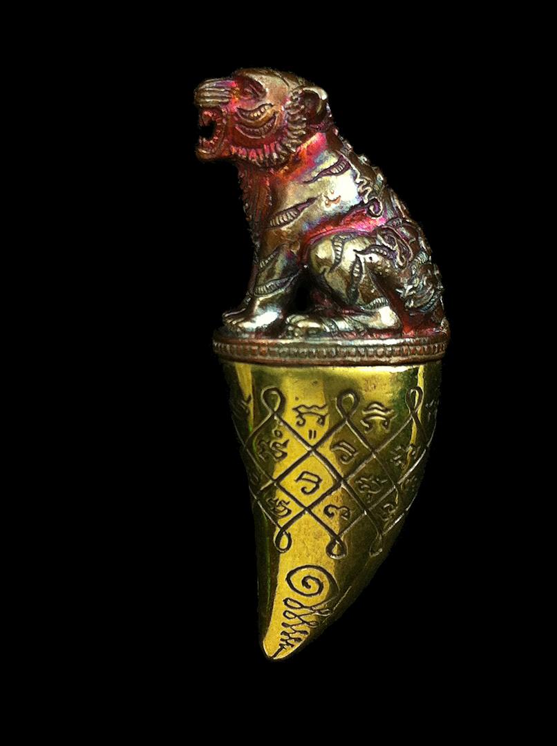 เสือเขี้ยวอาคม รุ่น พยัคฆ์ประทานพร เนื้อสัตตะผิวรุ้ง เขี้ยวทองเหลือง หมายเลข.711 รวมได้ 9 สวย สุดๆ ครับ