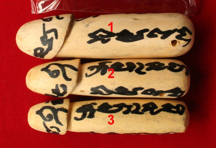 ปลัดขิกไม้รักแกะ จารหมึก ขนาดประมาณกว้าง 3/4 นิ้ว ยาว 3 นิ้ว