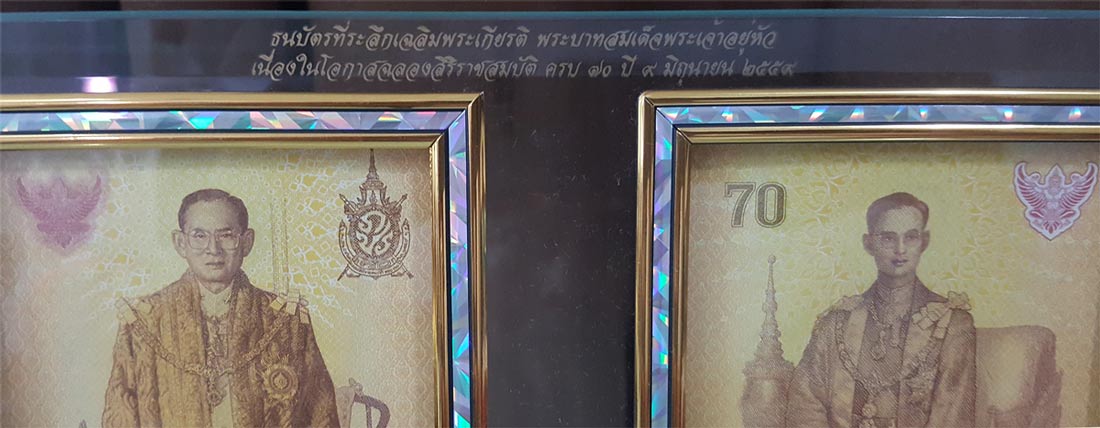กรอบกระจกใส่ธนบัตรฉลองสิริราชสมบัติทรงครองราช ครบ 70 ปี สกรีนอย่างดี สวยงาม