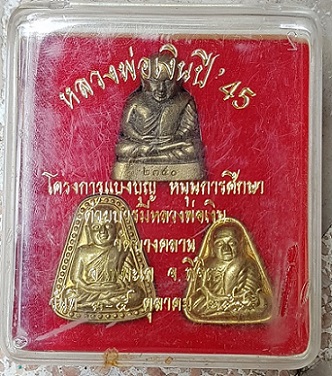 หลวงพ่อเงิน ปี 2545 รุ่นแบ่งบุญ-หนุนการศึกษา (เนื้อทองดอกบวบ) ปลุกเสกชนวนมวลสาร 5-6 เดือนครบ 108 วัด 108 คณาจารย์ ทำพิธีก่อนจำหน่ายหลายสถานที่รวมวัดบางคลาน