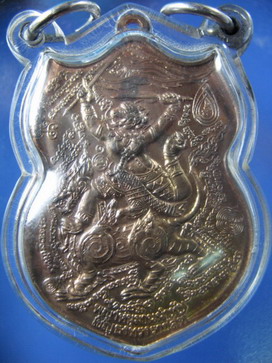 รายการที่ 1. เหรียญหนุมานเชิญธงทรงราชสีห์ เนื้อนวโลหะ... ทีมาของเหรียญหนุมานนั้นมีที่มาสืบเนื่องจากหลวงปู่กาหลง ( เขี้ยวแก้ว ) นั้นท่านเป็นอาจารย์สักยันต์หนังเหนียวมาก่อน ในเวลาต่อมาทางคณะศิษย์จึงจัดสร้างเหรียญหนุมานเชิญธงทรงราชสีห์.... ซึ่งตำรับหนุมานเชิญธงทรงราชสีห์นั้น นับเป็นพระยันต์ที่แรงมาก กล่าวกันในหมู่คนเล่นของสักยันต์ไว้ว่า หากเห็นใครสักยันต์หนุมานเชิญธงแล้ว อย่าได้เข้าต่อกรด้วย สู้อย่างไรก็ไม่ชนะ เพราะหนุมานเชิญธงนั้นนับเป็นตัวหนุมานที่แรงที่สุด ยากที่หาใครมาต่อกร ตำรับของหลวงปู่กาหลงนั้นเพิ่มความพิเศษลงไปอีก คื่อเป็นหนุมานเชิญธงแล้วยังทรงราชสีห์ด้วย ทำให้อิทธฤทธิ์นั้นแรงกว่าหนุมานเชิญธงกว่าปกติ.... ในการสร้างเหรียญหนุมานเชิญธงทรงราชสีห์นี้จึงมีพุทธคุณเด่นเรื่องคุ้มครอวป้องกัน ชนะสิบทิศ ไม่มีใครต้านทานได้ และยังดีทางเลื่อนขั้นเลื่อนตำแหน่ง มีสง่าราศรีดั่งพญาหนุมานนำทัพ เป็นมหาอำนาจ คุมคนคุมสัตว์ทั้งปวง แม้ว่าจะมีคุ่แข่งในการศึกหรือในทางธุรกิจก็ดีไม่อาจสู้เราได้เลย ( ข้อมูลจาก หนังสือ หลวงปู่กาหลง เขี้ยวแก้ว โดยทิพยจักร ) สำหรับเหรียญนี้สภาพสวยเดิมๆ เลี่ยมแบบสองห่วงพร้อมใช้ หมายเลข 1415 สำหรับประสบการณ์คงไม่ต้องกล่าวถึง.... ไม่อย่างนั้นคงไม่เรียกกันว่า เหรียญเด้งดึ้งสำหรับศิษย์สายตรงและผู้ที่สนใจเชิญครับ..... ( เจอก่อนตัดสินใจก่อนได้ก่อน )