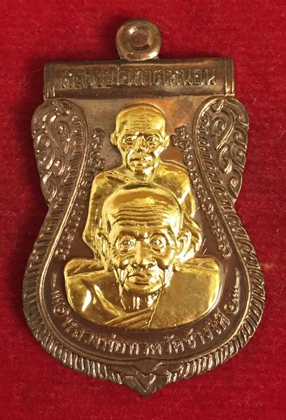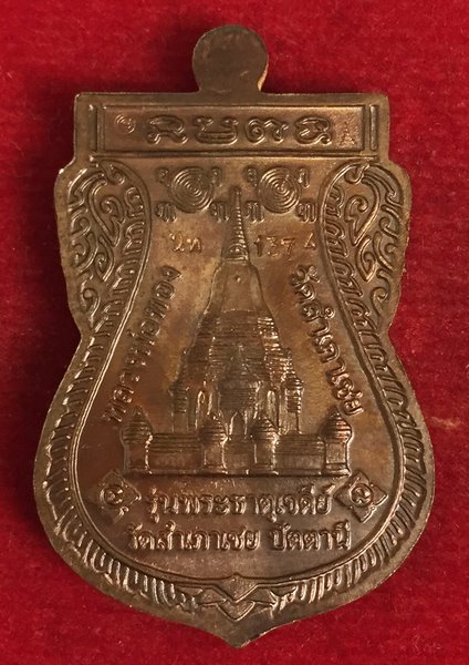 เหรียญหลวงพ่อทวด รุ่นพระธาตุเจดีย์ หลวงพ่อทอง วัดสำเภาเชย เนื้อนวโลหะหน้าทองคำแท้ สภาพเดิมพร้อมกล่อง