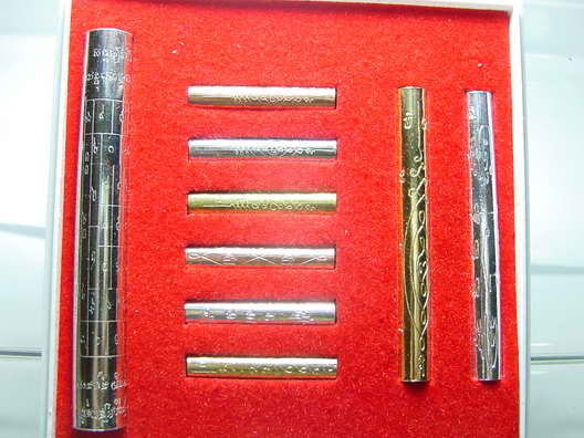 @@@ เจ้าอาวาสวัดหนองพงนกได้ จัดสร้างตะกรุดออกมา 2 ชุด ตะกรุดไตรมาส 9 ดอก และชุดกรรมการตะกรุด 6 ดอก ตะกรุดชุดนี้มีประเด็นที่ น่าสนใจในการสร้าง แทนที่จะม้วนด้านอักขระเข้าในกลับม้วนออกด้านนอก อาจารย์เวียน บอกว่า ต้องการให้คนรุ่นต่อไปได้ศึกษาอักขระเลขยันต์ตะกรุดก็เหมือนผ้ายันต์นั่นแหละ