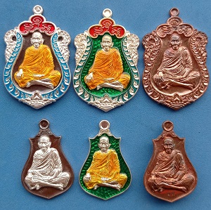 -เหรียญเสมา เนื้อนวะ ขอบกนกเงิน องค์เงิน ลงยา หลังเรียบ