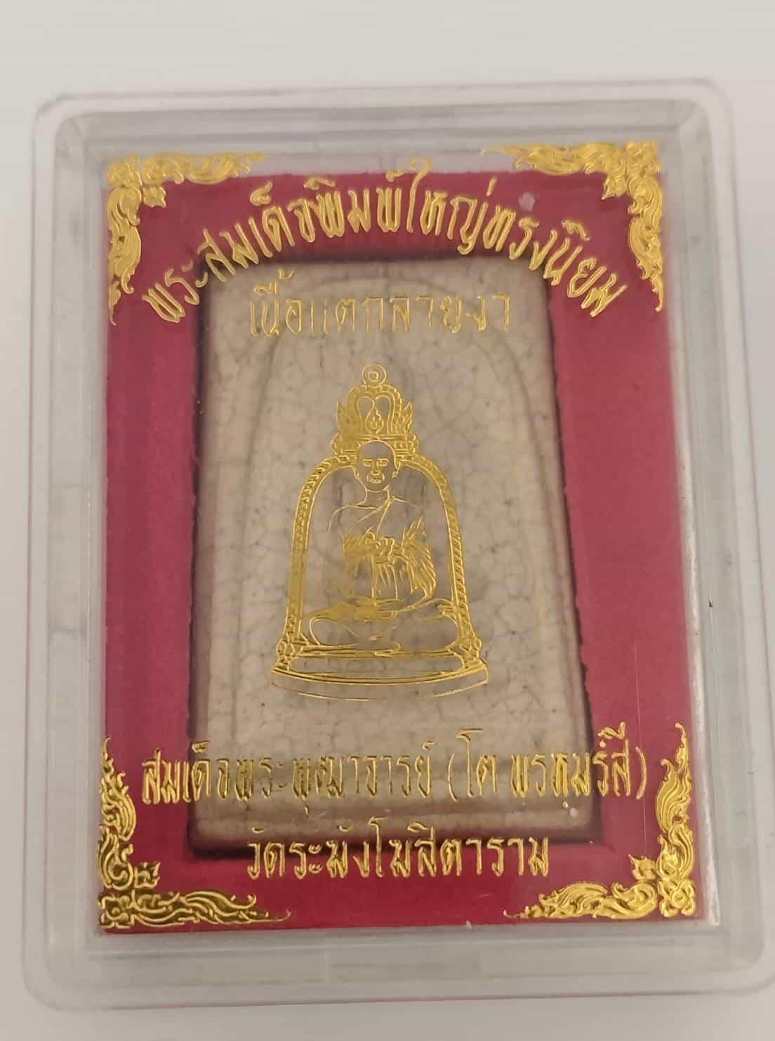 พระพิมพ์สมเด็จวัดระฆังเนื้อแตกลายงาผสมผงงา พิมพ์ใหญ่ ทรงนิยม เกตุทะลุซุ้ม (รุ่น M-16) ออกปี 2546
