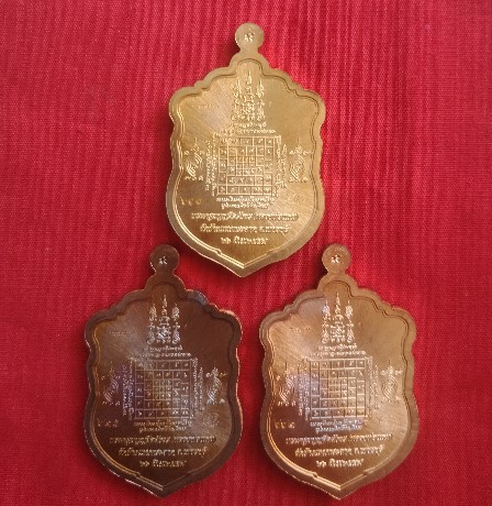 เหรียญเสมาหลวงพ่อแถม วัดช้างแทงกระจาด เพชรบุรี รุ่นเพชรเศรษฐี ชุด กรรมการลงยาหลังยันต์นูน 3 เหรียญ ประกอบด้วย