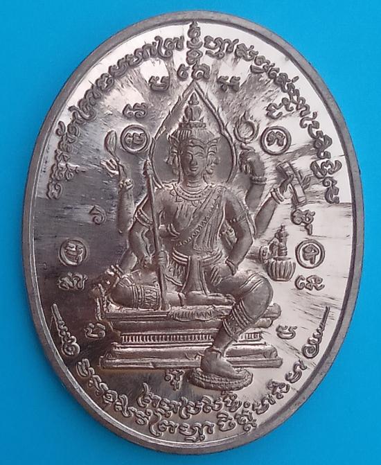 เหรียญพระพรหมรุ่นแรก หลวงปู่ตี๋ วัดหูช้าง นนทบุรี เนื้อตะกั่ว หลังจาร