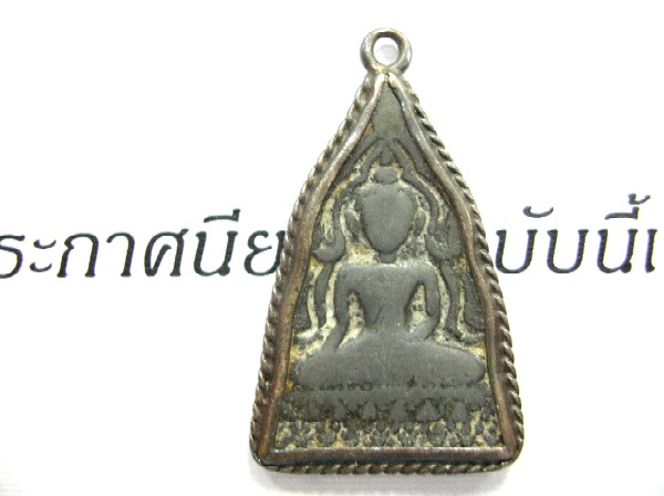 เลี่ยมเงินเก่า เปิดหน้า ปิดหลังตัดเป็นรูปใบโพธิ์ ตามความเชื่อและความนิยมในสมัยก่อน มีคราบไขเก่าดูง่าย สบายใจ เชื่อมั่นได้ว่าพุทธคุณต้องครบเครื่องทุกด้านแม้จะสร้างเป็นแบบ องค์แบนครึ่งซีก ด้วยเนื้อตะกั่วก็ตาม ทั้งนี้ก็เพราะวัสดุในการสร้างพระสมัยนั้นค่อนข้างหายาก อีกทั้งสมัยนั้นก็นิยมสร้างวัตถุมงคลด้วยเนื้อตะกั่วเพราะสร้างได้ง่ายไม่มีอะไรยุ่งยาก ส่วนพุทธคุณจะดีแบบใดก็อยู่ที่ผู้สร้างมีความเก่งทางด้านใดเท่านั้น ส่วนมูลเหตุที่ หลวงพ่อโม สร้างพระในรูปแบบของ พระพุทธชินราช นั้นก็เนื่องเพราะเมื่อครั้งที่ พระปรมากรมุณี ซึ่งเป็นพระอุปัชฌาย์ของท่านไปรับตำแหน่งเป็น เจ้าคณะ แห่งเมืองพิษณุโลก หลวงพ่อโม ผู้เป็นศิษย์จึงเดินทางไปปรนนิบัติรับใช้พระอาจารย์ในกาลครั้งนั้นด้วย จึงได้มีโอกาสไปสัมผัสและกราบนมัสการ พระพุทธชินราชองค์ใหญ่ ที่ประดิษฐาน ณ วัดพระศรีรัตนมหาธาตุ อย่างสม่ำเสมอ หลวงพ่อโม จึงมีความศรัทธา พระพุทธชินราช เป็นอย่างยิ่ง ดังนั้นเมื่อเดินทางกลับมาจำพรรษาที่ วัดสามจีน เมื่อปี พ.ศ. 2460 จึงได้สร้างพระเครื่องเป็นพิมพ์ พระพุทธชินราช ด้วยเนื้อตะกั่วแล้วทำการลงอักขระด้วยเหล็กจารที่ด้านหลังองค์พระตามวิธีการสร้าง วัตถุมงคล ของท่านด้วยอักขระเลขยันต์ที่มีหลายแบบไม่ซ้ำกัน จึงเป็นสิ่งแสดงว่า หลวงพ่อโม เป็นผู้แตกฉานใน คาถาอาคมและอักขระเลขยันต์หลายแขนง พระพุทธชินราชหลวงพ่อโม ปัจจุบันแม้ราคาจะสูงขึ้นบ้างตามกาลเวลาแต่ยังไม่ไกลเกินเอื้อมเพราะอยู่ในหลักพันกลางถึงพันแก่ ๆ เท่านั้น จึงขอแนะผู้ที่ต้องการมีพระพุทธชินราชไว้อาราธนาติดตัวให้หา พระพุทธชินราชหลวงพ่อโม นี้มาใช้แทน เพราะนอกจากราคายังไม่แพงจนเกินกาลแล้วยังเป็น พระพุทธชินราช ที่มีอายุการสร้างนับว่าสูงทีเดียวคือปัจจุบันอายุการสร้างก็ประมาณ 80 กว่าปีแล้ว เรียกว่าเป็นพระเก่าที่มีอายุเปรียบเป็น พระกรุ ได้เลย ส่วนประสบการณ์นั้นก็ได้มีผู้เล่าขานมาตลอดว่าดีครบเครื่องไม่เช่นนั้นพวก *--ขอขอบคุณ ข้อมูลจากคุณ ปริญญา ปาลกะวงศ์ ณ อยุธยา