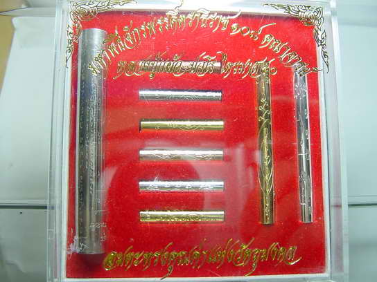 @@@ เจ้าอาวาสวัดหนองพงนกได้ จัดสร้างตะกรุดออกมา 2 ชุด ตะกรุดไตรมาส 9 ดอก และชุดกรรมการตะกรุด 6 ดอก ตะกรุดชุดนี้มีประเด็นที่ น่าสนใจในการสร้าง แทนที่จะม้วนด้านอักขระเข้าในกลับม้วนออกด้านนอก อาจารย์เวียน บอกว่า ต้องการให้คนรุ่นต่อไปได้ศึกษาอักขระเลขยันต์ตะกรุดก็เหมือนผ้ายันต์นั่นแหละ