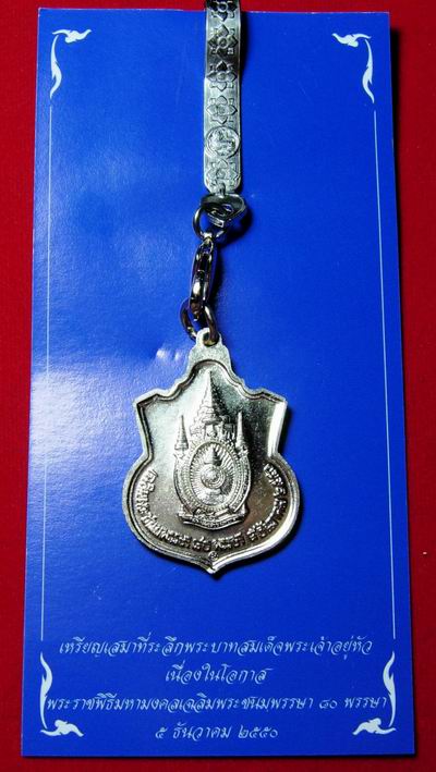 เหรียญเสมาที่ระลึกพระบาทสมเด็จพระเจ้าอยู่หัว เนื่องในโอกาสพระราชพิธีมหามงคลเฉลิมพระชนมพรรษา 80 พรรษา 5 ธันวาคม 2550 พร้อมแหนบและซองเดิม (เนื้ออัลปาก้า)