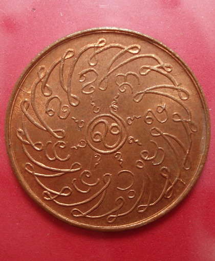 ...ลักษณะเหรียญเป็นแบบปั้มกลมแบนขอบเลียบ ด้านหน้าเหรียญ ภายในซุ้มเรือนแก้วเป็นรูป พระแก้วมรกต ประทับนั่งบนฐานบัวคว่ำบัวหงาย มีผ้าทิพย์ห้อย และดอกไม้อยู่โดยรอบ ด้านหลังเหรียญ เป็นรูปยันต์กงจักร มีอักษรจารึก มรรค ๘ อักขระขอมที่ปรากฏ คือ