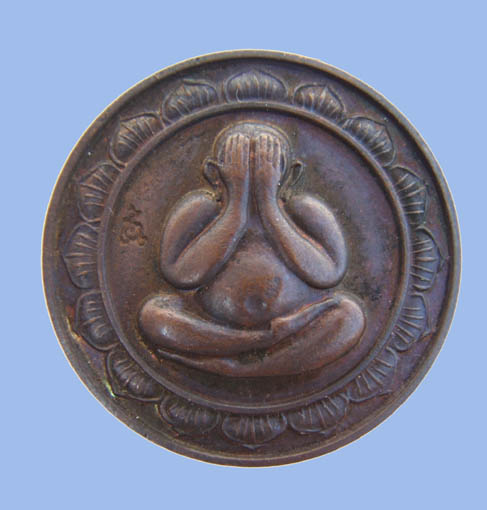 สำหรับองค์นี้เป็นพิมพ์กลีบบัวใหญ่ขนาดเส้นผ่าศูนย์กลาง2.5ซ.ม.เนื้อทองแดงสภาพสวย สร้างปี พ.ศ.2523 จำนวนการสร้างน้อยนิด2000เหรียญ ด้านที่เห็นเป็นสีเขียวเนื่องจากขนกำมะหยี่ พระองค์นี้เคยติดไว้ที่แผงกรอบรูปปูพื้นด้วยผ้ากำมะหยี่สีเขียว เสนอราคาที่ 3500บาท