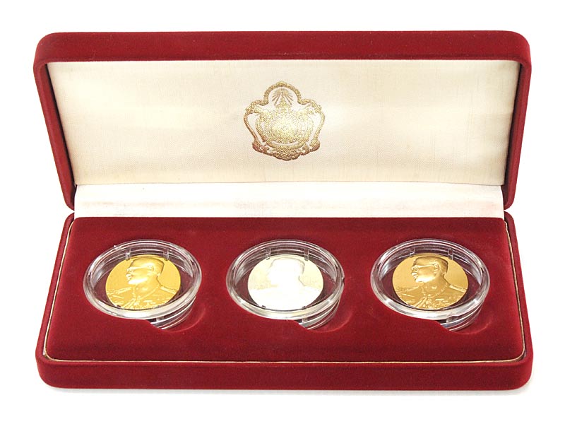 ชุดเหรียญพระบรมฉายาลักษณ์พระบาทสมเด็จพระเจ้าอยู่หัว พ่นทราย พื้นหลังขัดเงา