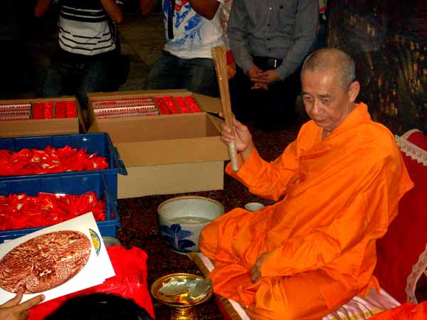 ภาพการประกอบพิธี ปลุกเสกชนวนมวลสาร ที่วัดเล่งเน่ยยี่ บ่ายวันที่ 5 กุมภาพันธ์ 2551 ได้นำมวลสารต่างๆและชนวนคันฉ่องสัตตะโลหะ รวมถึงแผ่นทองคำจารและแผ่นเงินจารเข้าพิธีในวาระนี้ด้วย