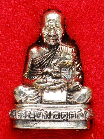 รูปหล่อ หลวงปู่ทิม วัดพระขาว เนื้ออัลปาก้า ฐานฝังตะกรุดเงิน สูง 3 ซ.ม. ปี 2545 กล่องเดิม