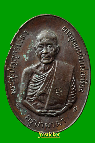 เหรียญครูบาผาผ่า อ.แม่สะเรียง รุ่นแรก พิมพืครึ่งองค์ เนื้อทองแดง ปี 2517