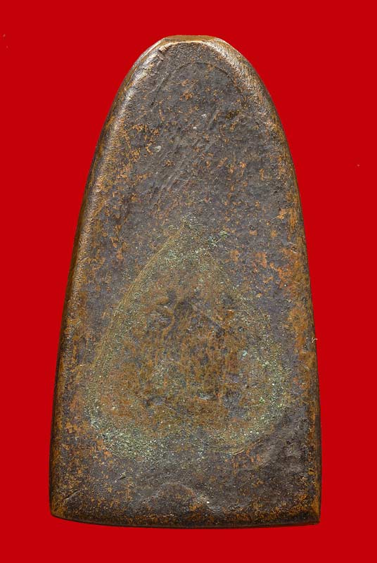 พระองค์นี้ผ่านการเลี่ยมพลาสติคโบราณ เจาะช่องด้านหลังเป็นรูปใบโพธิ์จะสังเกตเห็นร่องรอยรูปใบโพธิ์ ด้านหลังองค์พระ องค์นี้มาไกล จากสุไหงปาดี
