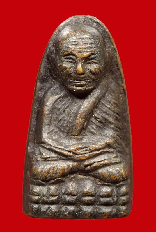 หลวงปู่ทวด: พิมพ์กลางปั๊มซ้ำ แบ่งออกเป็นพิมพ์หน้าใหญ่ (องค์ที่โชว์นี้) และหน้าเล็ก กระแสเนื้ออาจเป็นเหลืองอมแดง หรือดำอมน้ำตาล ส่วนใหญ่ผ่านการชุบน้ำยาดำ (พรางเพื่อความสวยงามยิ่งขึ้น) เช่นเดียวกับพิมพ์ใหญ่ปั๊มซ้ำ (แต่ก็มีพิมพ์กลางปั๊มซ้ำบางองค์ที่ไม่ชุบน้ำยาดำที่ว่านี้ เพราะพระปั๊มออกมาสวยตั้งแต่แรก) ปกติรายละเอียดของพิมพ์กลางปั๊มซ้ำในแต่ละองค์อาจแตกต่างกันได้ เช่น ร่องรอยการเขยื้อน ความคม (พระปั๊มช่วงหลังๆ ความคมอาจลดลงได้ เพราะแม่พิมพ์ปั๊มเริ่มสึก และไม่คมเหมือนเดิม) ตำแหน่งรอยครูดที่ด้านซ้ายมือองค์พระ