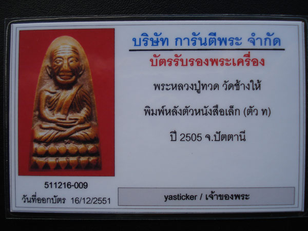 ....คุณ yasticker คะ ทางสำนักงานจะแจ้งการขอ RECALL พระหลวงปู่ทวด วัดช้างให้ หลังหนังสือ พิมพ์เล็ก บล็อก ตัว ท. ปี 2505 ของคุณ yasticker คะ....