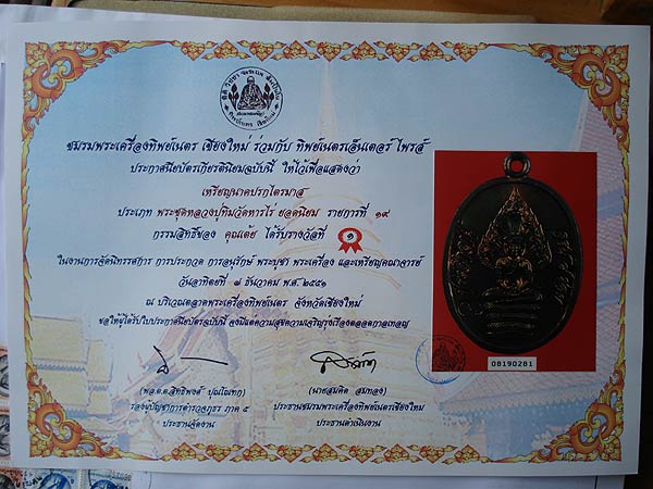 ไปตลาดคำเที่ยง เชียงใหม่ เจอน้องๆ ในเวปการันตีพระที่อยู่เชียงใหม่ ยื่นเหรียญหลวงปู่ทิม ปรกไตรมาส ตอก 2 โค้ดให้ เลี่ยมทองยกซุ้มพร้อม แถมมีใบประกาศที่ 1 งานเชียงใหม่ เมื่อวันที่ 7 ธันวาคม 2551 อีกต่างหาก ....
