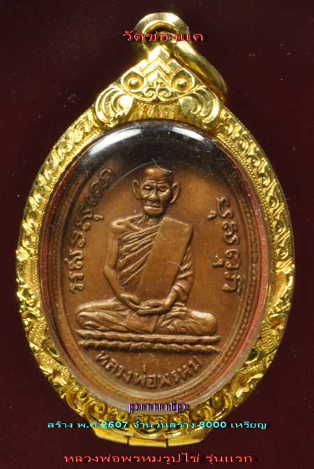 องค์ที่สอง เหรียญรูปไข่ รุ่นแรก มีเนื้อทองแดงผิวไฟ/ทองแดงชุบทอง มีหูเหรียญ/ไม่มีหูเหรียญ สร้าง พ.ศ.2507 จำนวน 3000 เหรียญ |