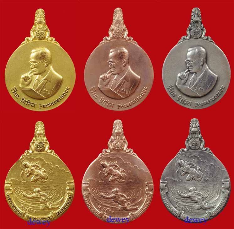 2. เหรียญมหาชนกชุดใหญ่ ประกอบด้วยเนื้อทองคำ นาก และเงิน (ทองคำหนัก 34 กรัม นากหนัก 24 กรัม และเงินหนัก 23 กรัม) |