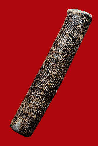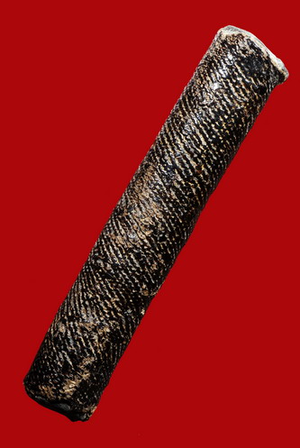 ตะกรุดของท่านสร้างด้วยตะกั่วทุบ ลงอักขระเป็นรูปยันต์4 ไขว้ตรงกลางเป็นองค์พระส่วนด้านนอกรอบด้วยคาถาพระเจ้าสิบหกพระองค์ ส่วนยอดด้านบนลงรูปองค์พระ อักขระลง อิสวาสุ มะอะอุ ลอมอยู่ด้านบนทั้ง4มุม ตะกรุดดอกนี้มีลงรักปิดทองทั้งดอกมาแต่เดิม แต่ถ่ายรูปมองไม่เห็น ตัวจริงสวยมากเห็นทองลงร่องเชือกตลอดทั้งดอกทองเก่าได้อายุ เนื้อตะกั่วขึ้นไข เนื้อตะกั่วที่ม้วนรวมเป็นเนื้อเดี๋ยวกัน อีกด้านของตะกรุดมีรอยลั่นของเชือกเป็นแนวยาว ไม่ได้ถ่ายรูปมา ดูง่ายครับรักมันส์สภาพนี้ถือว่าสมบูรณ์มากแล้ว |