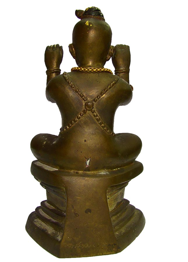 เป็นตุ๊กตาทองเนื้อโลหะรุ่นแรกของหลวงพ่อแย้ม วัดสามง่าม ก้นอุดด้วยดินเจ็ดป่าช้า ชืท่อเหมือนผมเปี๊ยบเลยครับ ตอนนั้นทำบุญองค์ละแค่สามร้อยบาทเองครับ ตอนได้มาใหม่ๆเฮี้ยมน่าดูมาให้เห็นกันจะจะ มานั่งอยู่หน้าห้อง แบมือให้เห็นตัวเลข แต่ดันไม่แทง ออกเต็มๆครับ ช่วงหลังก็ได้ประปรายเลยมีทองให้ใส่ครับ ของเล่นไม่ต้องพูดถึงบานตะเกียง วันนี้เอามาให้ชมกันครับ เพิ่งงจะไปให้หลวงพ่อลงให้อีกครั้งครับ  |
